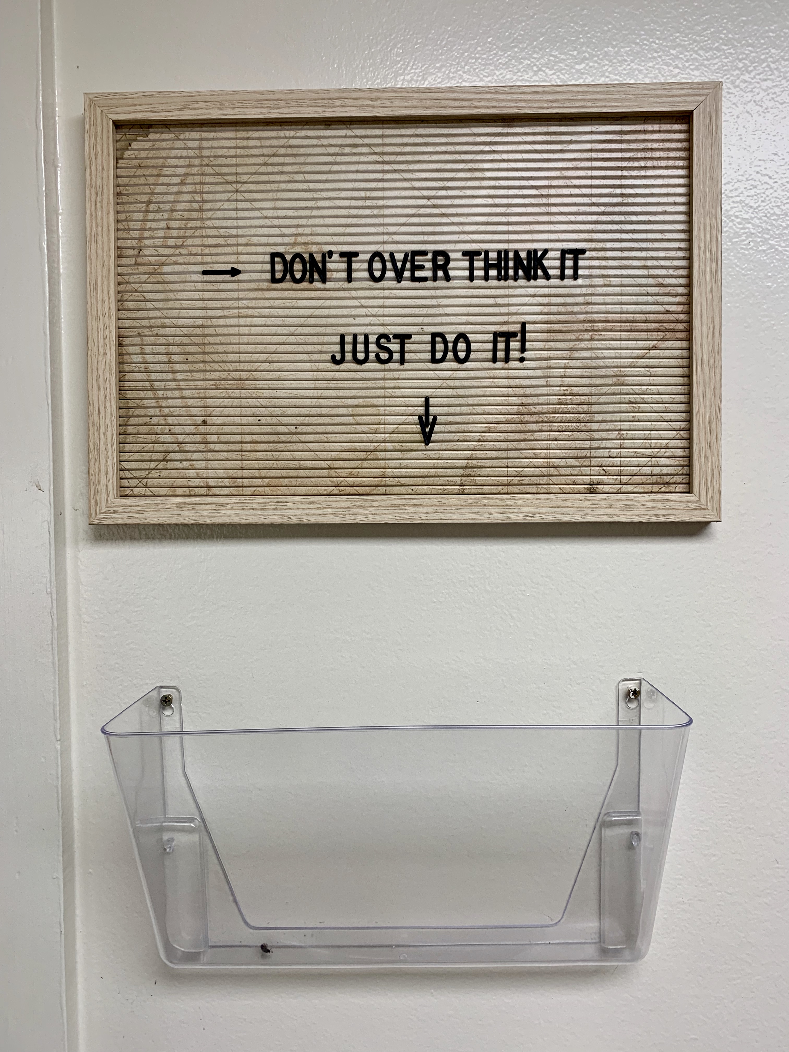 October 12, 2019October 12, 2019 Martin Remy Don’t over think it Seen in the Math/CS department at Santa Clara University. Share this: Click to share on X (Opens in new window) X Click to share on Facebook (Opens in new window) Facebook Like Loading... Related